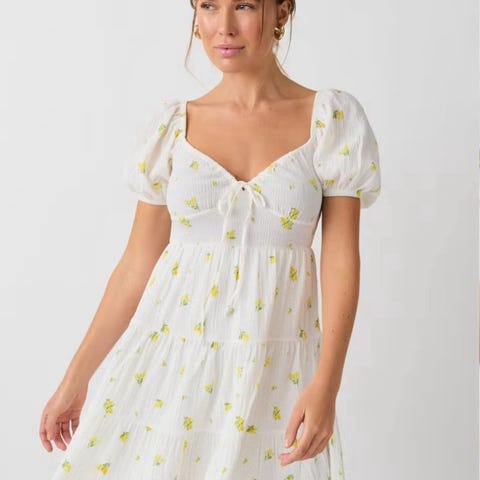 Gina Tricot sommerkjole i størrelse S, laget av bomull. Kjolen har en rosa farge og er designet for kvinner. Den har en smal passform med elastisk overdel og volangdetaljer nederst. Kjolen er kjempe populær og utsolgt i alle størrelser.