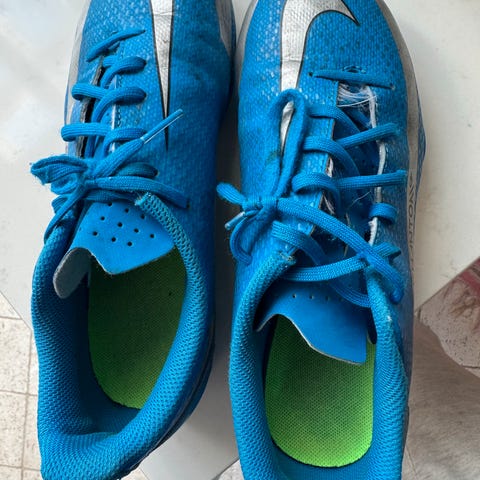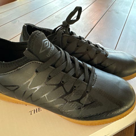 Intec Sport barne fotballsko i størrelse 34. Skoene har oransje farge med svarte og hvite detaljer, og borrelåslukking for enkel tilpasning.