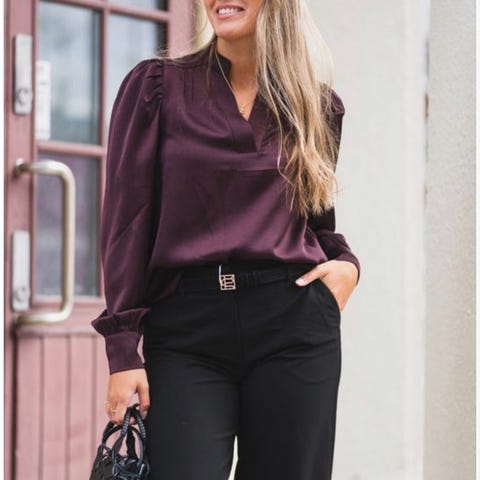 Rosslyn Heavy Sateen Blouse som er brukt 2 ganger selges. Burgunder farve. Må hentes sentralt i Oslo.
