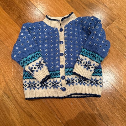 Hjemmestrikket ullgenser og lue i garnet Hip Wool.