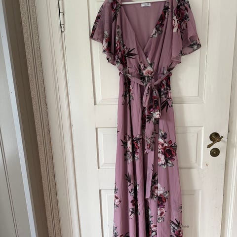 Brukt i bryllup. Sydd opp da den var litt for lang. Jeg er 166cm. Men den passer nok 160-170cm om den fortsatt ønskes i ca ankel-lengde.
