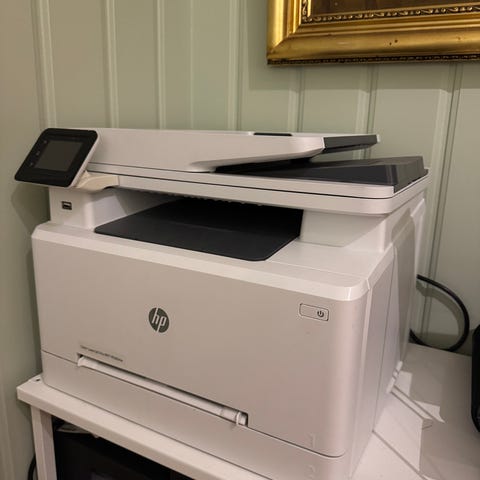 Printeren har akkurat fått nye tonere så her skal den holde til mye utskrift eller kopier.