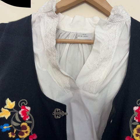 Pent brukt. I størrelse 42. Men med knyting og vid i størrelsen. Så vil si den nesten er mer onesize siden den kan strammes rundt livet.
