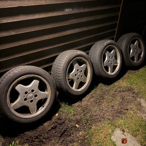 Dekkene er ikke i god stand, men felgene er i god stand.