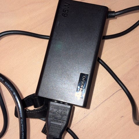 Lenovo 95W adapter for laptop charging. Produsert i mars 2021. Inkluderer strømkabel og adapter med tilkobling for Lenovo-enheter.