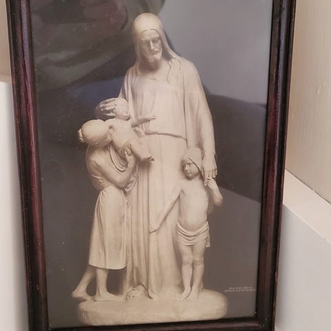 Bildet måler 30 x 50 cm. Fra 70 tallet. Motivet heter Vinternatt. Med oppheng. Selges kr 95.