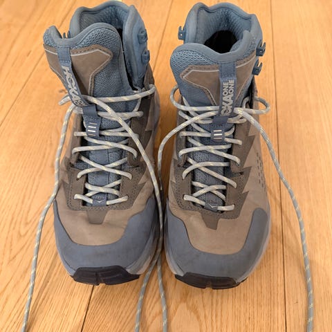 Hoka One One vandresko i størrelse 38 2/3. Egnet for fotturer. Skoene har en slitesterk såle med godt grep, og er designet for å gi komfort og støtte under utendørsaktiviteter.