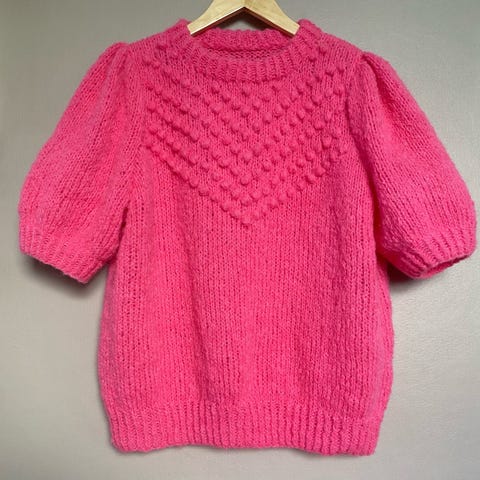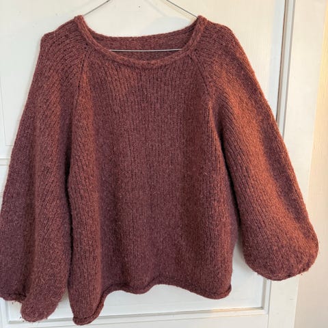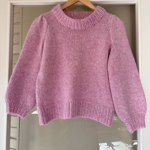 Hjemmestrikket tykk t-shirt med rund hals og puffermer.