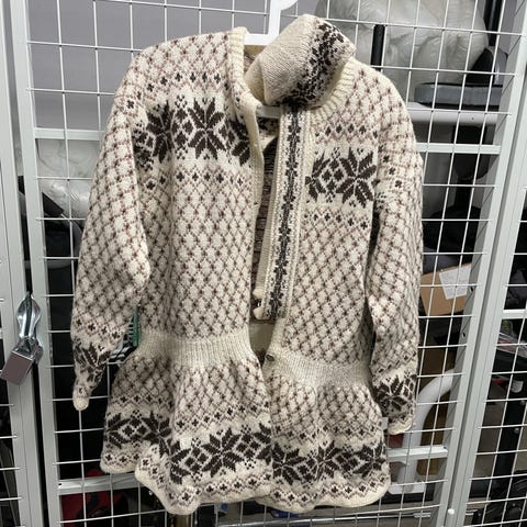 Nydelig kofte i ull, vet ikke eksakt hvilket garn, men er myk og god. Kjøpt brukt selv men passet ikke. Selges derfor videre.