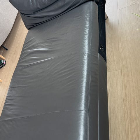 Svart lenestol med sølv bein. Må hentes.