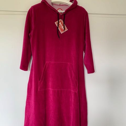 KO:KO kjole i størrelse 38 for kvinner. Kjolen er laget av polyester og har en rød farge med svart mønster. Litt dyp utrigning. Glidelås i siden. Som denne bare full lengde: https://www.kokonorway.no/products/irene-rod-snowflake-kjole