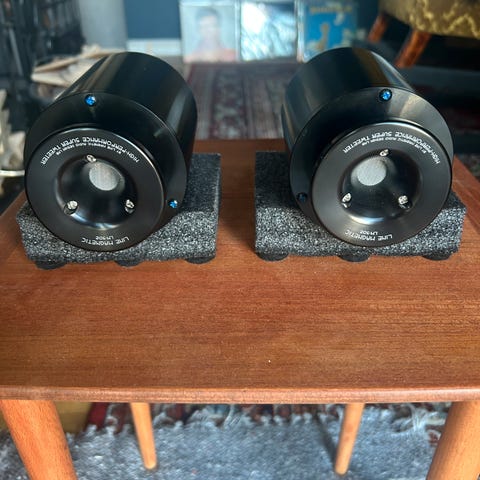 1 par meget pene Fountek NeoCD3.5H bånd diskanter. Brukt som superdiskanter som er delt fra 10.000 eller 13.000Hz (ved hjelp av en bryter) og helt opp til 30.000Hz. Dette kan selvfølgelig endres for å tilpasse andre høytalere.