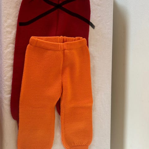 Se bilde 2 for oversikt bukser, størrelse 4,6 og 8 år. Kun én igjen i størrelse 1år og 2år, begge i nyanse av orange.Ny pris 200kr stk uansett størrelse. Denne annonsen gjelder den grønne på bilde 1, de andre har egne annonser.