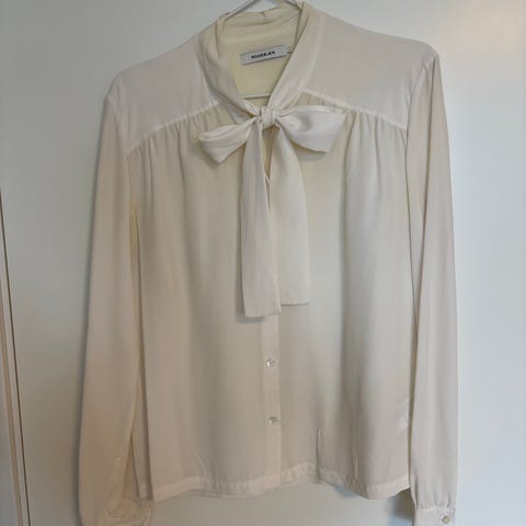 Blusen er laget i et lett og luftig materiale som gir et feminint og tidløst uttrykk.