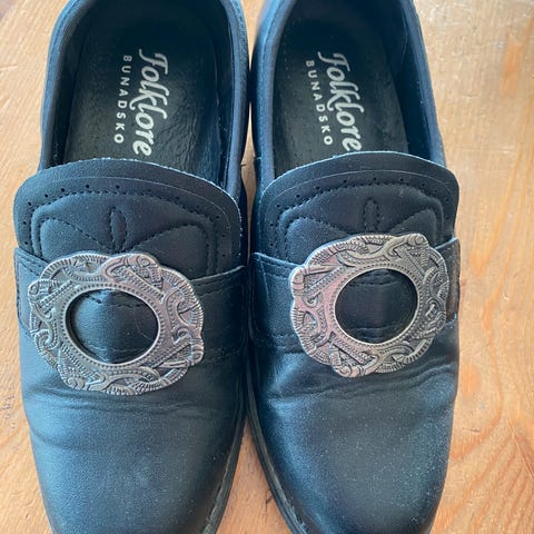 Pent brukte bunadssko fra Norsk Festdrakt.