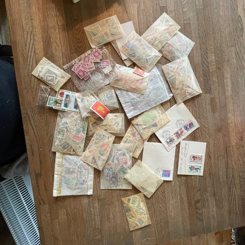Isboks med masse eldre i hovedsak Svenske,men også andre nordiske,eldre frimerker.Arvet så usikker på hva det er,mye gammelt tror jeg,usikker -bud