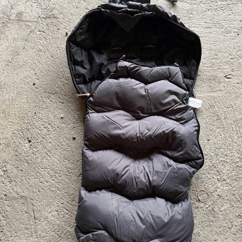 Godt brukt, og noe slitasje. Har selv kjøpt den brukt for ett år siden. God og varm vognpose.