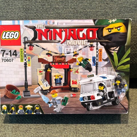 LEGO Ninjago Movie byggesett med modellnummer 70607. Passer for barn i alderen 7-14 år. Inneholder flere minifigurer og detaljerte byggedeler for å bygge scener fra Ninjago-universet.