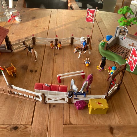 Selger alle heste/gård deler som ikke blir brukt av barna mine lenger. Det er ikke fra et spesifikt sett men alt er koblet med hest eller gård.