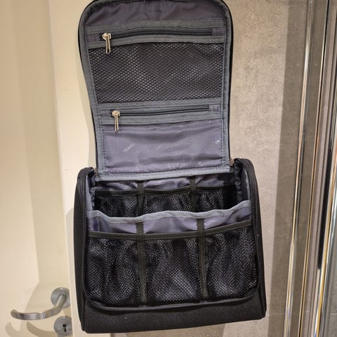 Opphengbar toalettmappe i rosa med ugler