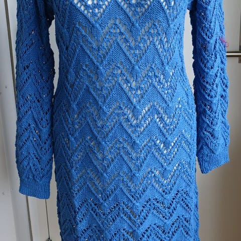Ny håndstrikket lang dame genser i 100% bomull, størrelse 40.