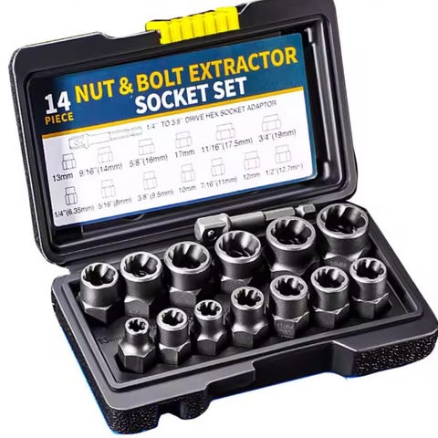 Manuell slagskrutrekker med 13 deler, levert i metallboks. Perfekt for å løsne rustne skruer. Inneholder flere utskiftbare bits for ulike skruetyper og størrelser. Egnet for presisjonsarbeid og små reparasjoner.