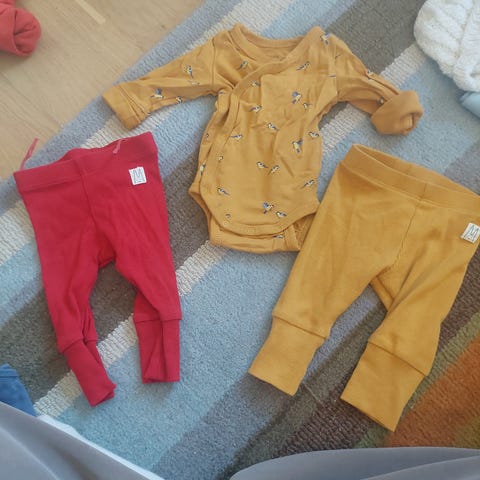 Hipster lue, ull body str 68 og strømpebukser i bomull str 68.