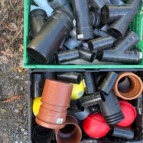 Pall med nye baderomsarmaturer og diverse annet for rørentusiast.