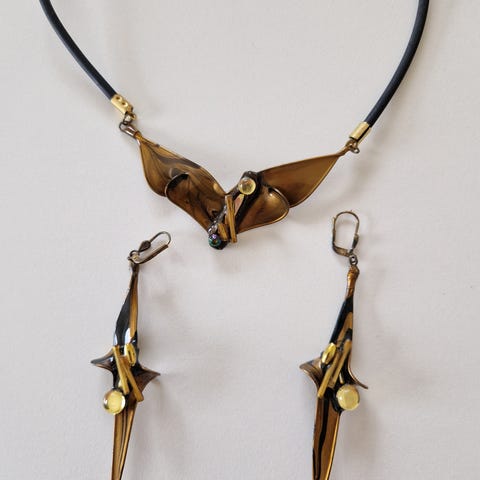 Halskjede for dame med flere dekorative anheng/charms i metall. Vintage og bohemsk look.