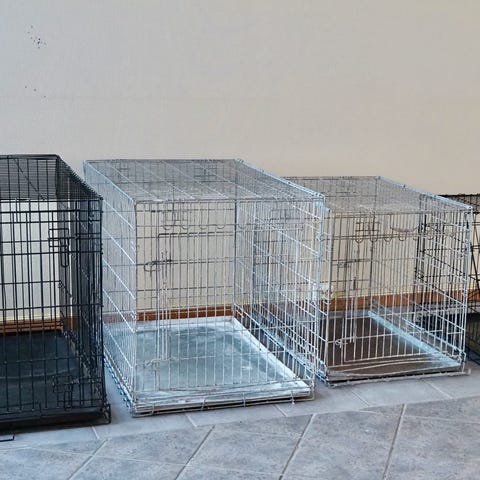 Hundeburet har solid stålbunn. Mål fremgår av bildet. Dør på langsiden. Hentes Nannestad.