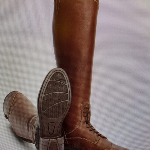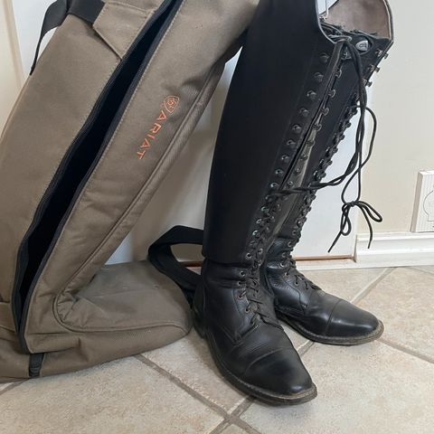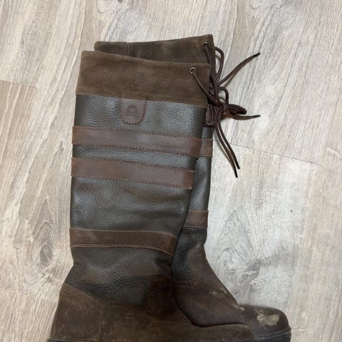 Toggi Ridehjelstøvler i brun skinn. Støvlene er designet for ridning og har et høyt skaft som gir støtte og beskyttelse. Materialet er slitesterkt skinn som gir god holdbarhet.