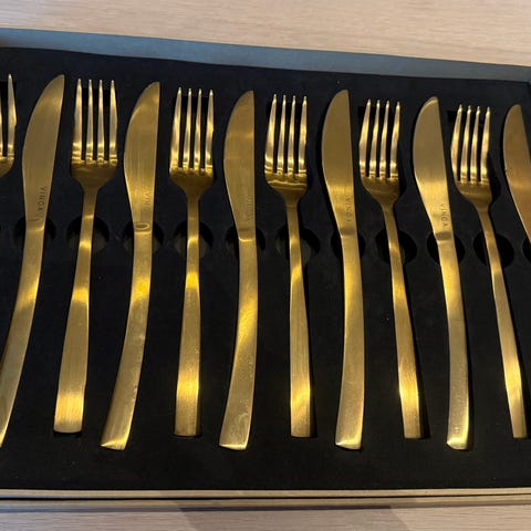 Knivene er nyslipt og polert, men bevist valgt å ikke polere bort mindre merker, da det ville endret knivbladets karakter til å bli høyglans mot dagens noe mer matt finish.