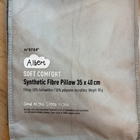 En mestselgende fiberputeserie med hulfiber og trekk i 100% bomull. Lav pute, tilpasset barn.