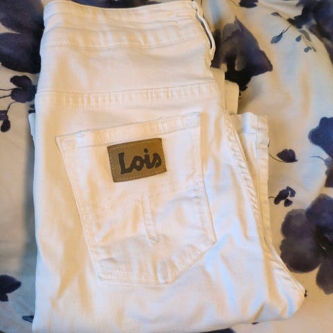 sømmen har gått litt i stykker på den ene lommen. Det ene benet er litt revet opp i sømmen, se foto