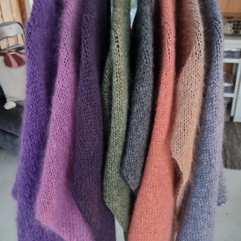 Trekant/ spisset, håndstrikket, sjal/skjerf