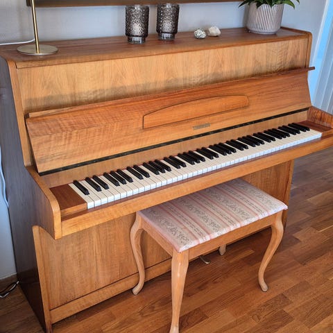 Görs Kallmann piano med hvit finish. Pianoet har tradisjonell design med treverk på innsiden og hvitmalte ytre flater. Utstyrt med standard tangenter og pedaler, egnet for hjemmebruk eller undervisning. Sist ble det justert i 2024, har veldig fin lyd) må hentes. Send en melding hvis du har spørsmål😊
