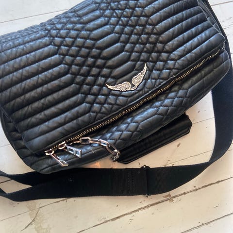 Zadig&Voltaire dameveske laget i lær. Vesken har et sort ytre med strukturert mønster og rosa innside. Den har skulderstropper og en innvendig lomme med glidelås. Lengde 34 cm, høyde 32 cm og 15 cm bredde. Ny pris 6500kr selges 3000kr lite brukt, jeg bruker Vipps kun seriøse blir svart. Noen små flekker med blekk i bunnen, lett å fjerne med neglelakk fjerner.