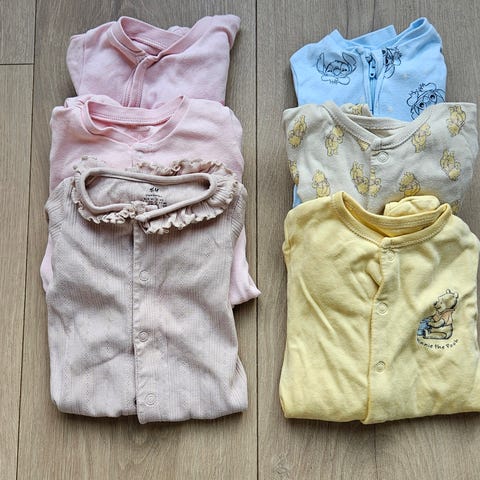 2 pysjamaser fra Lindex. Hull i nakken og noen flekker på den ene armen på den ene pysjen. Det har ingenting å si for bruken, og er knapt synlig.