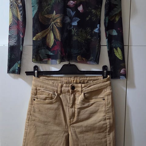 Populær bukse fra Stradivarius. Kjøpt ny men brukt noen få ganger av en jente på 13 år. Vid modell på beina Str 36. Fargen er grå. Passer til ungdom eller til voksen.