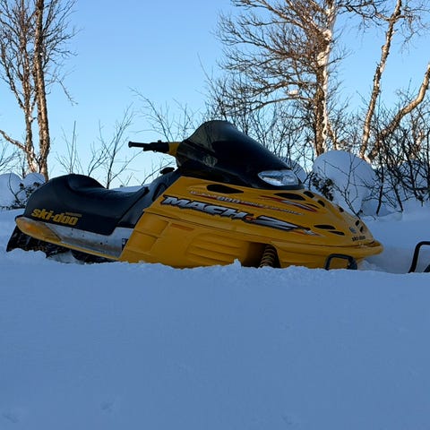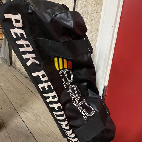 Gammel Ski-Doo Ryggsekk fra 2002 i svart og gul farge. Utstyrt med flere lommer og justerbare stropper for komfortabel bæring. Egnet for utendørs bruk og oppbevaring av utstyr.