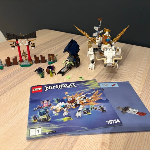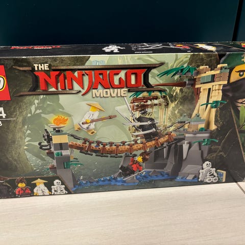 LEGO NINJAGO Movie byggeklosser sett med flere minifigurer og kjøretøy. Inkluderer instruksjonshefte og forskjellige deler for bygging av scener og figurer fra filmen.