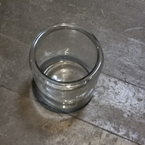 Den har noen luftbobler i glasset, men dette synes ikke om man har blomster, lys eller annen pynt i.