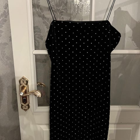 H&M festkjole i størrelse 36, laget av polyester. Kjolen er svart og designet for kvinner. Passer til formelle anledninger og festbruk.