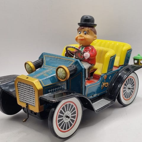Huki er et velkjent navn innen tysk blikkleketøy, og selv ufullstendige eksemplarer har verdi for samlere, spesielt når merking og original litografi er intakt.