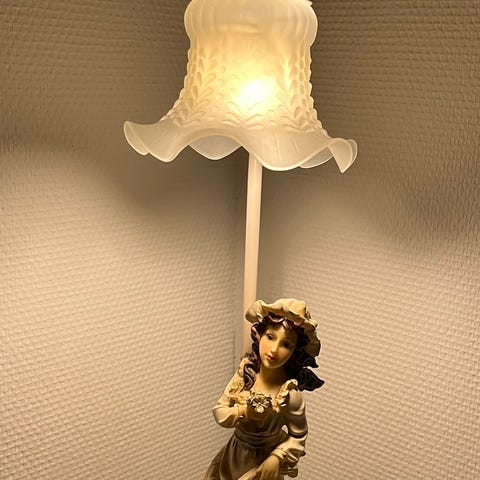 Vintage Blanc De Chine porselen Guanyin Kwanyin figurlampe. Høyde uten pærer - 43 cm