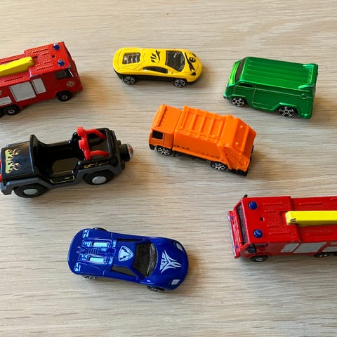 Biler og en pirat. Pris tot for 5 stk. leker.