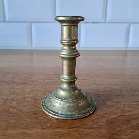 Vintage lysestake i messing. Høyde - 11 cm