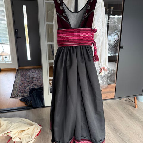 Selges komplett med en håndbrodert plattsøm skjorte, belte og forklebånd (ikke på bildet)Alt er i originale materialer fra Tyrihans og Rauma.
