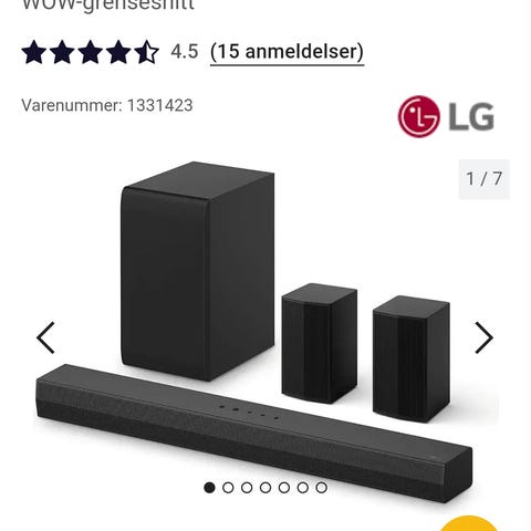 Selger et LG lydsystem med soundbar og trådløs aktiv subwoofer. Gir fyldig og kraftig lyd, perfekt til TV, film, serier og musikk.