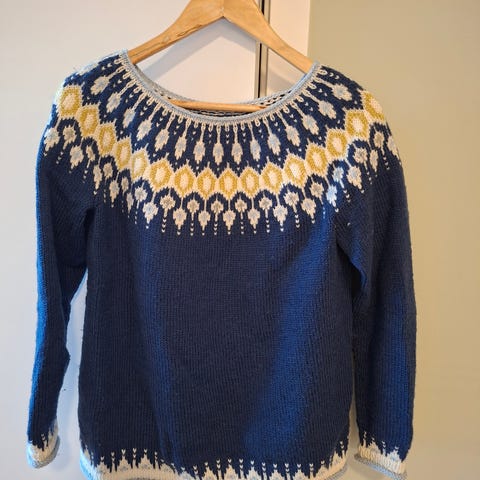 Kjempefin strikket genser av merket "Better Richard". Kjøpt i Salzburg for 2 år siden for ca 1000,- . Litt baggy, liten splitt nederst på hver side.